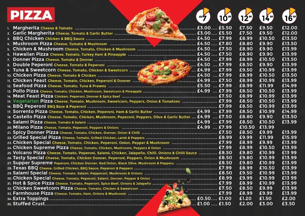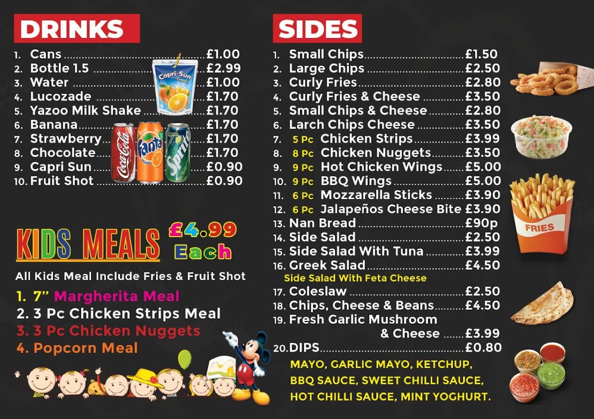 Introducing the menu at TASTY PIZZA, a delightful takeaway gem located at 25 Bebington Rd, New Ferry, Wirral. This establishment has quickly earned a stellar reputation for its mouthwatering pizzas and generous kebabs.